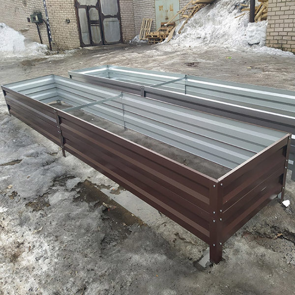 Грядки изготовлены из оцинкованного металла толщиной 0,5 мм.